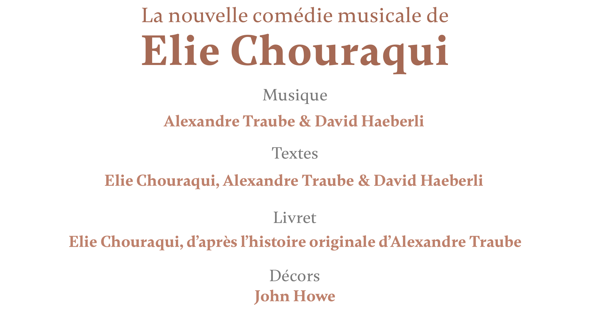 Une rencontre franco-suisse insolite entre les artistes romands Alexandre Traube et David Charles et l’un des maîtres de la comédie musicale francophone Elie Chouraqui.